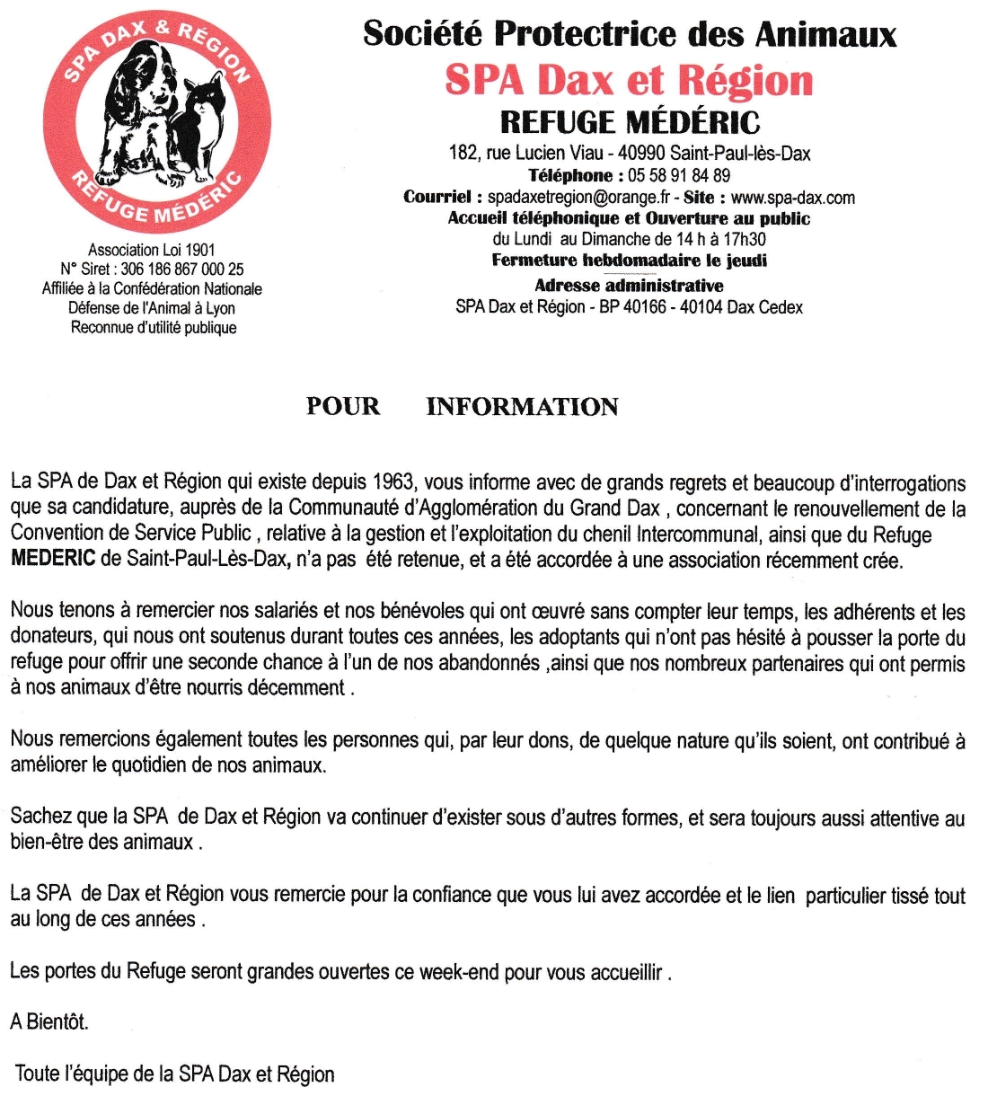 SPA DAX ET RÉGION - REFUGE MÉDÉRIC